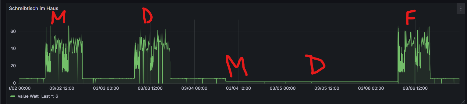 Einen Strommesser besorgen, damit ich weiß wann und wie lange ich gearbeitet habe